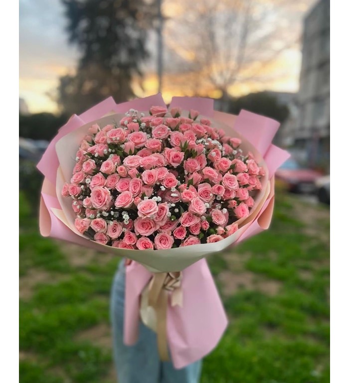 Oldukça gösterişli büyük pembe gül buketi XXL