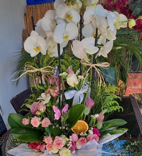 4 dal ithal beyaz orkide ve çiçek tanzimi lüks saksıda tanzim