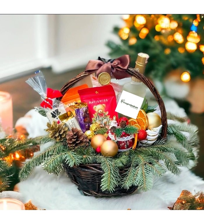 ÇEŞİTLİ YILBAŞI AKSESUARLARI VE SÜSLERİYLE BİRLİKTE HAZIRLANAN SEPETİMİZ